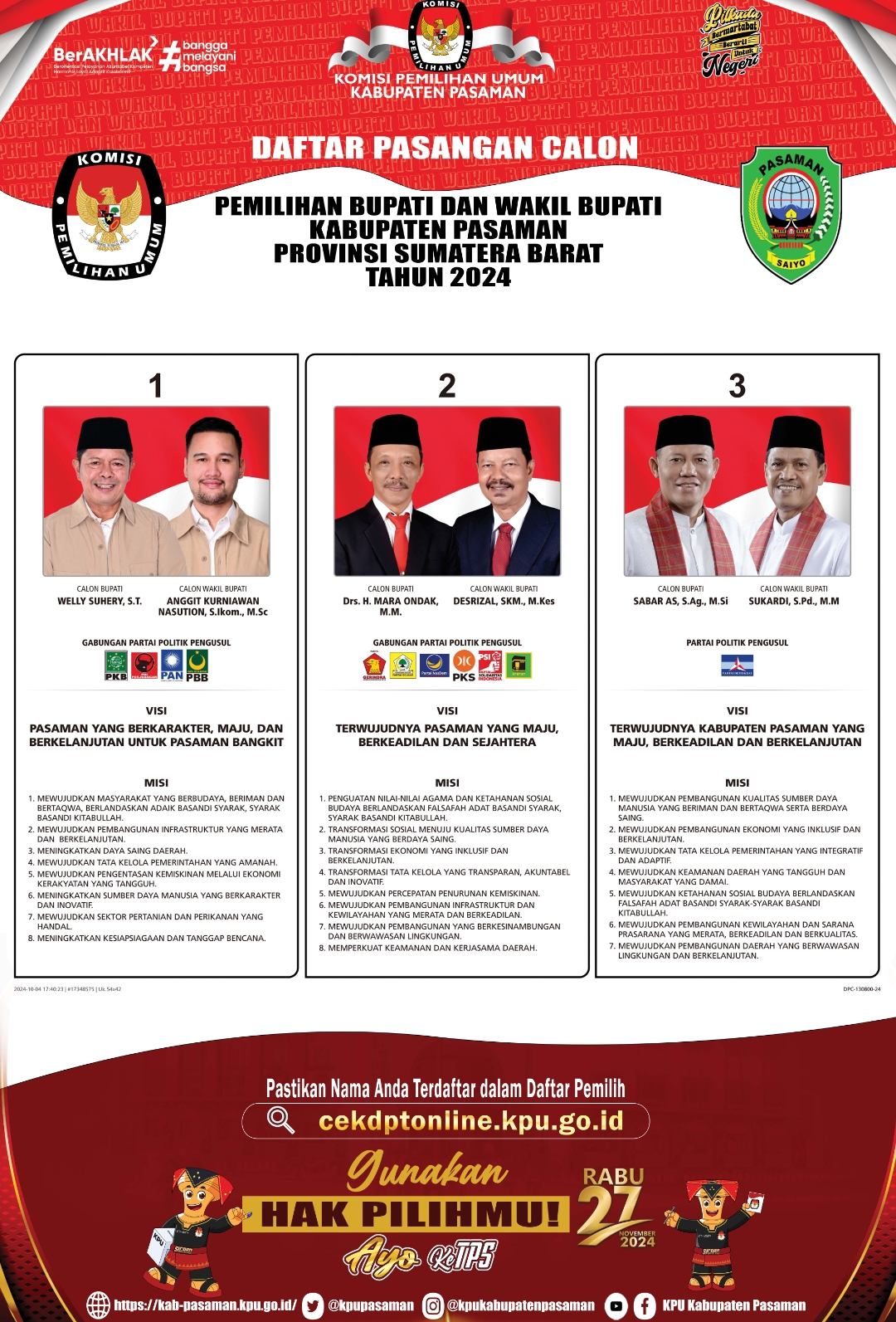 Pasaman — Teman Pemilih, Jangan Lupa Gunakan Hak Pilihmu ! Ayo ke TPS pada hari Rabu, 27 November 2024.