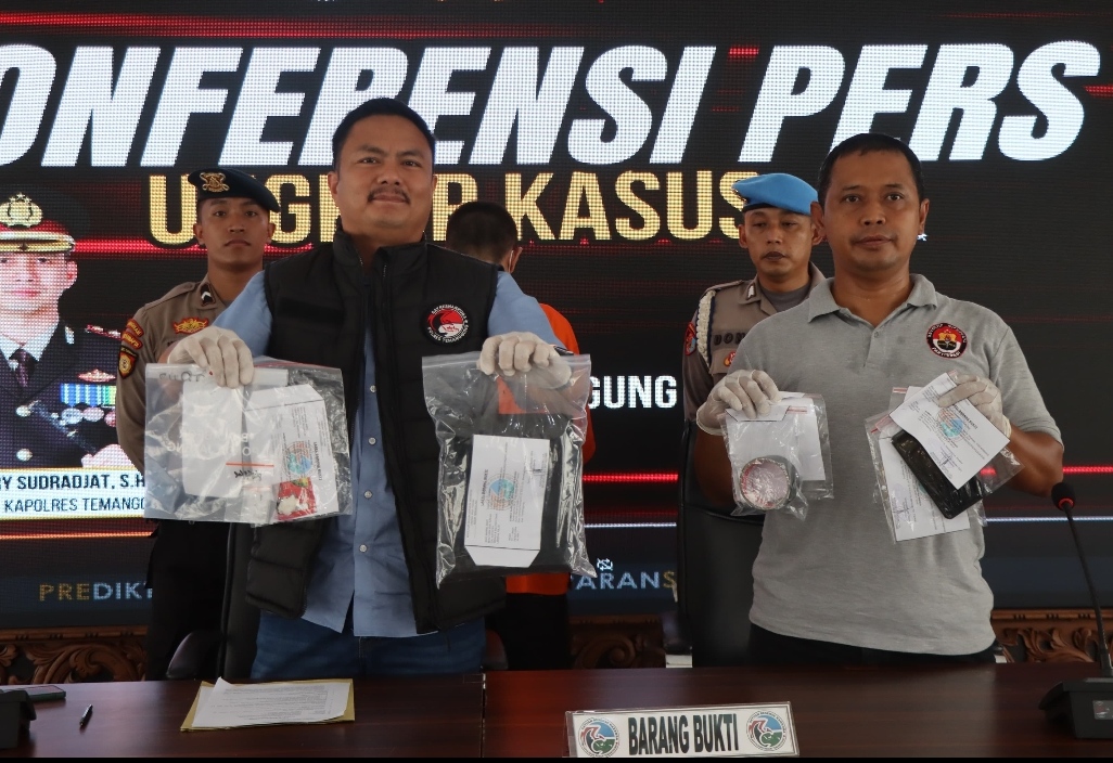 Kepada awak media Kapolres Temanggung AKBP Ary Sudrajat melalui Kasat Resnarkoba, Iptu Rio Putra Simanjuntak mengungkapkan dalam penangkapan tersebut petugas berhasil mengamankan berbagai barang bukti, termasuk dua plastik klip berisi sabu dengan berat masing-masing 0,36 gram dan 0,16 gram, satu handphone, lakban hitam, cutter, potongan sedotan, celana panjang hitam, serta sepeda motor Honda Beat dengan nomor registrasi B-4340-BUE yang diduga digunakan dalam aktivitas pengedaran narkoba. Senin (25/11).