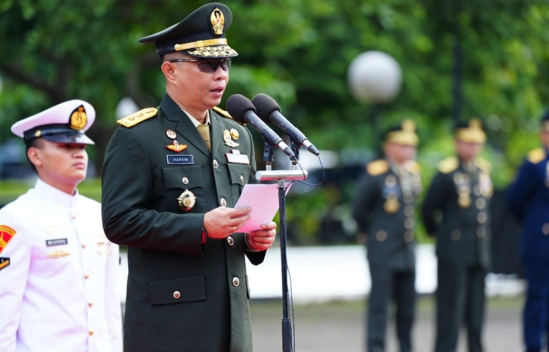 Markas Besar Tentara Nasional Indonesia (Mabes TNI) menggelar Upacara Peringatan Hari Bela Negara Ke-76 Tahun 2024 yang dipimpin Pa Sahli TK III Bidang Wassus dan Lingkungan Hidup Panglima TNI Mayjen TNI Harvin Kidingallo, S.H., S.T., M.Han. dengan tema “Gelorakan Bela Negara Untuk Indonesia Maju”, bertempat Lapangan Apel B3 Mabes TNI, Cilangkap, Jakarta Timur, Kamis (19/12/2024).