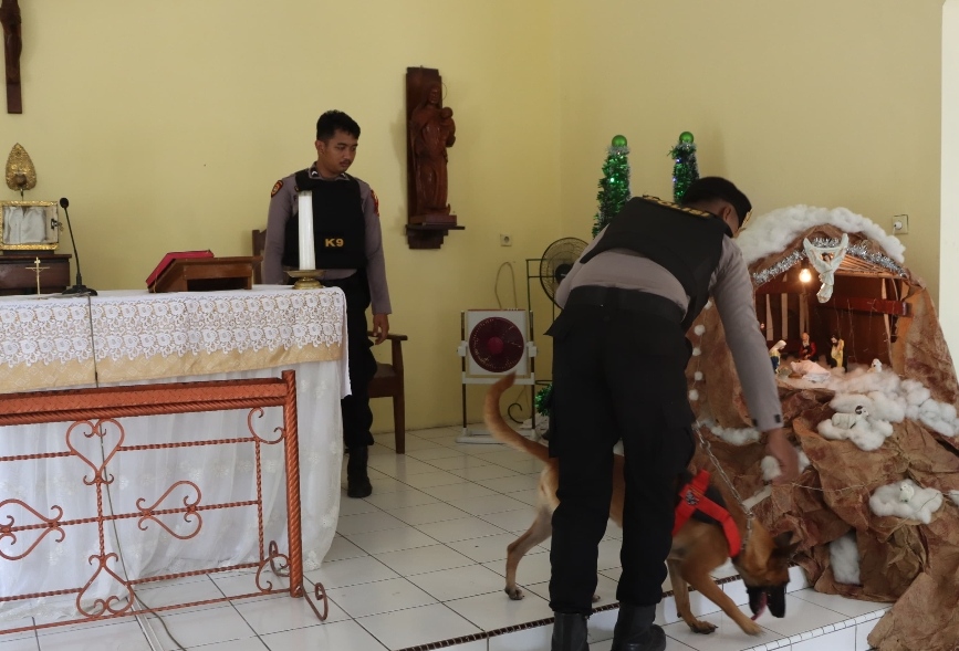 Demak – Polres Demak melakukan sterilisasi Gereja Kristen Jawa (GKJ) dan Gereja Katolik Santo Mikael di Demak yang akan melaksanakan perayaan dan ibadah Natal, Selasa (24/12/2024).