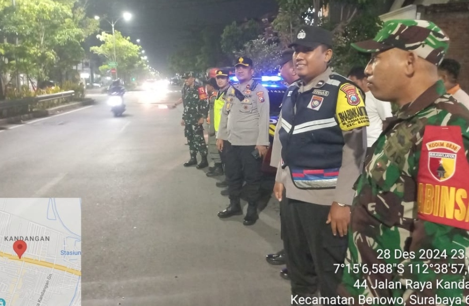 Surabaya –Dalam rangka menciptakan situasi keamanan yang kondusif, Babinsa Koramil 0830/06 Benowo, Sertu Qomaruddin dan Sertu Moh Edi Santuso, ikuti Apel Asuhan Rembulan Tiga Pilar bersama Polsek Benowo dan Satpol PP di depan Kantor Polsek Benowo, Jl. Raya Sememi, Kelurahan Sememi, Kecamatan Benowo, pada Sabtu (28/12) malam.