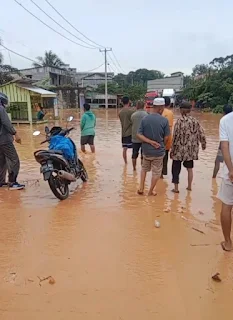 Air yang meluap akibat curah hujan tinggi masih menggenangi pemukiman warga, bahkan sebagian warga terpaksa dievakuasi untuk keselamatan mereka.