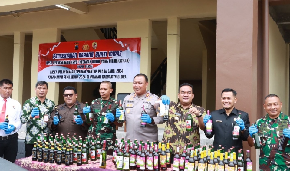 Polres Blora Polda Jawa Tengah Menggelar kegiatan pres rilis akhir tahun 2024, Kamis, (02/01/2025) di Mapolres Blora. Selain Pres Rilis juga dilaksanakan pemusnahan barang bukti minuman keras dan narkoba.