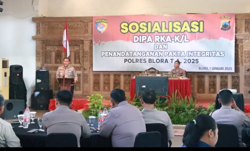 Kapolres Blora Polda Jawa Tengah AKBP Wawan Andi Susanto, SH, SIK, MH memimpin kegiatan sosialisasi Daftar Isian Pelaksanaan Anggaran (DIPA) tahun 2025. Digelar pula penandatanganan pakta integritas Polres Blora dengan polsek jajaran.