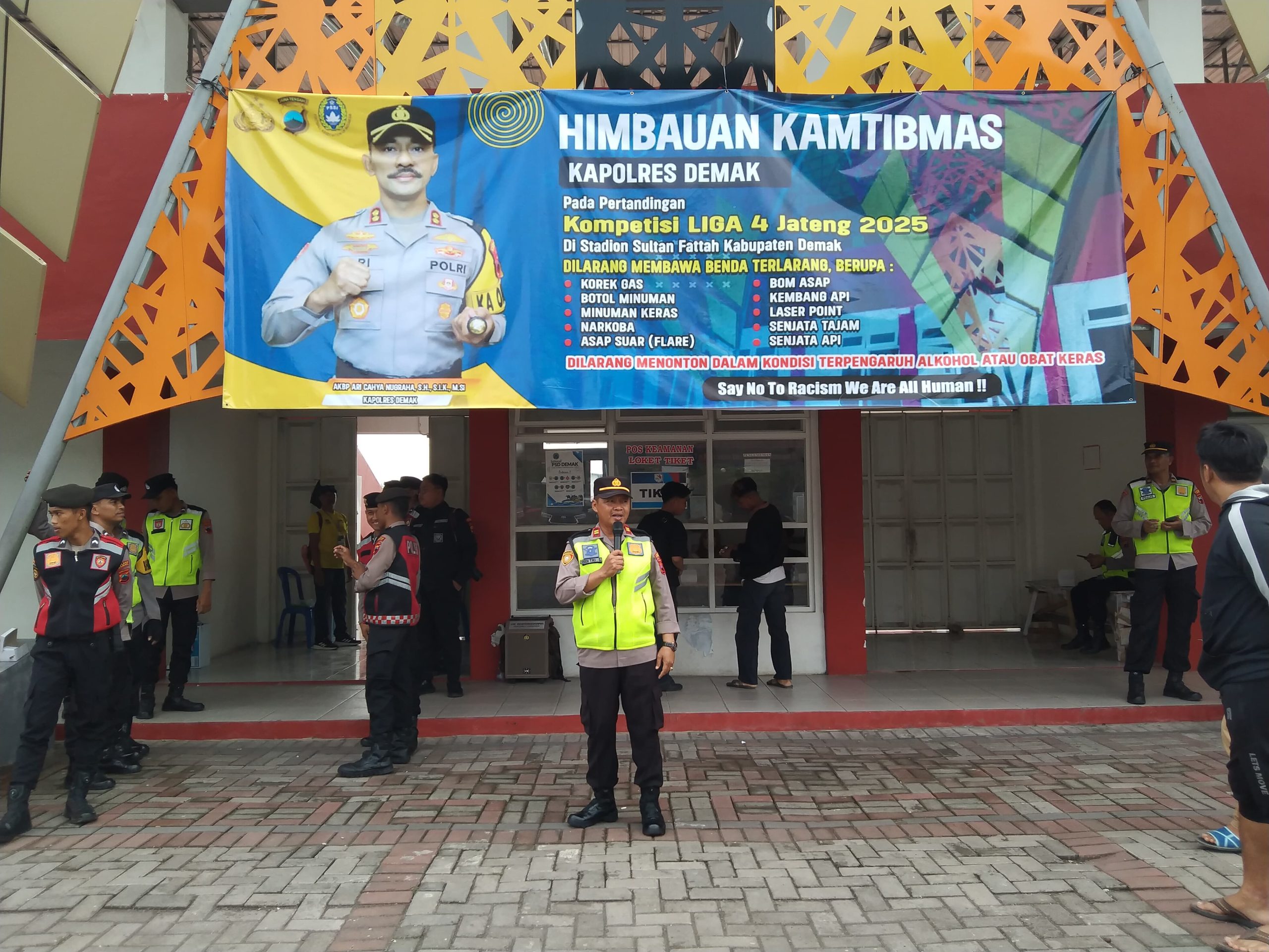 Demak – Polres Demak melaksanakan pengamanan pertandingan kompetisi Liga 4 Jateng 2025 yang digelar di Stadion Sultan Fatah Demak, Rabu (15/01/20225.
