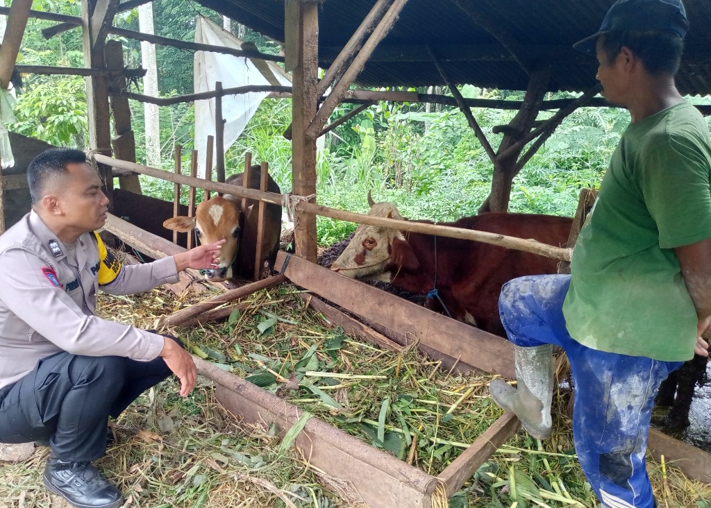 Dalam kunjungannya, Aiptu Yan Pribadi menyampaikan sejumlah pesan penting kepada warga, termasuk kepada Bapak Munardi, pemilik dua ekor sapi di wilayah tersebut. Ia menjelaskan langkah-langkah antisipasi gangguan Kamtibmas, mendata pemilik hewan ternak, dan memberikan pemahaman tentang pencegahan PMK yang saat ini menjadi perhatian pemerintah.