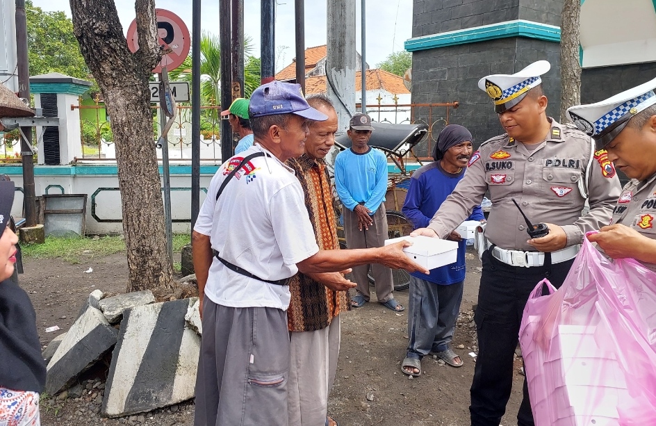 Polres Demak News – Kapolres Demak AKBP Ari Cahya Nugraha,SH,SIK,MH melalui Kasat Lantas Polres AKP Thoriq Aziz,STK,SIK,SH,MH bersama personel Satlantas Polres Demak melaksanakan kegiatan sosial tertib berlalu lintas bertajuk Jumat Berkah, Jumat (24/1/2025). Dalam kegiatan ini, mereka membagikan sejumlah nasi kotak kepada masyarakat yang membutuhkan di seputaran Kabupaten Demak.