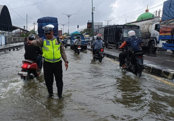 “Kita laksanakan pengaturan arus lalu lintas yang dilaksanakan oleh anggota Satlantas Polres Demak antisipasi dampak genangan air di lokasi sebab rawan macet dan rawan kecelakaan,” ujar Kasat Lantas.