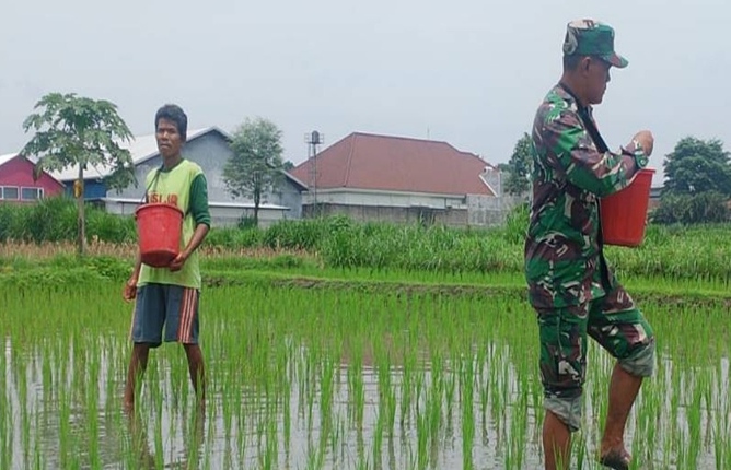 Kegiatan ini merupakan bagian dari pendampingan Babinsa terhadap para petani guna memastikan tanaman padi tumbuh optimal sehingga dapat meningkatkan hasil panen dan mendukung target swasembada pangan.