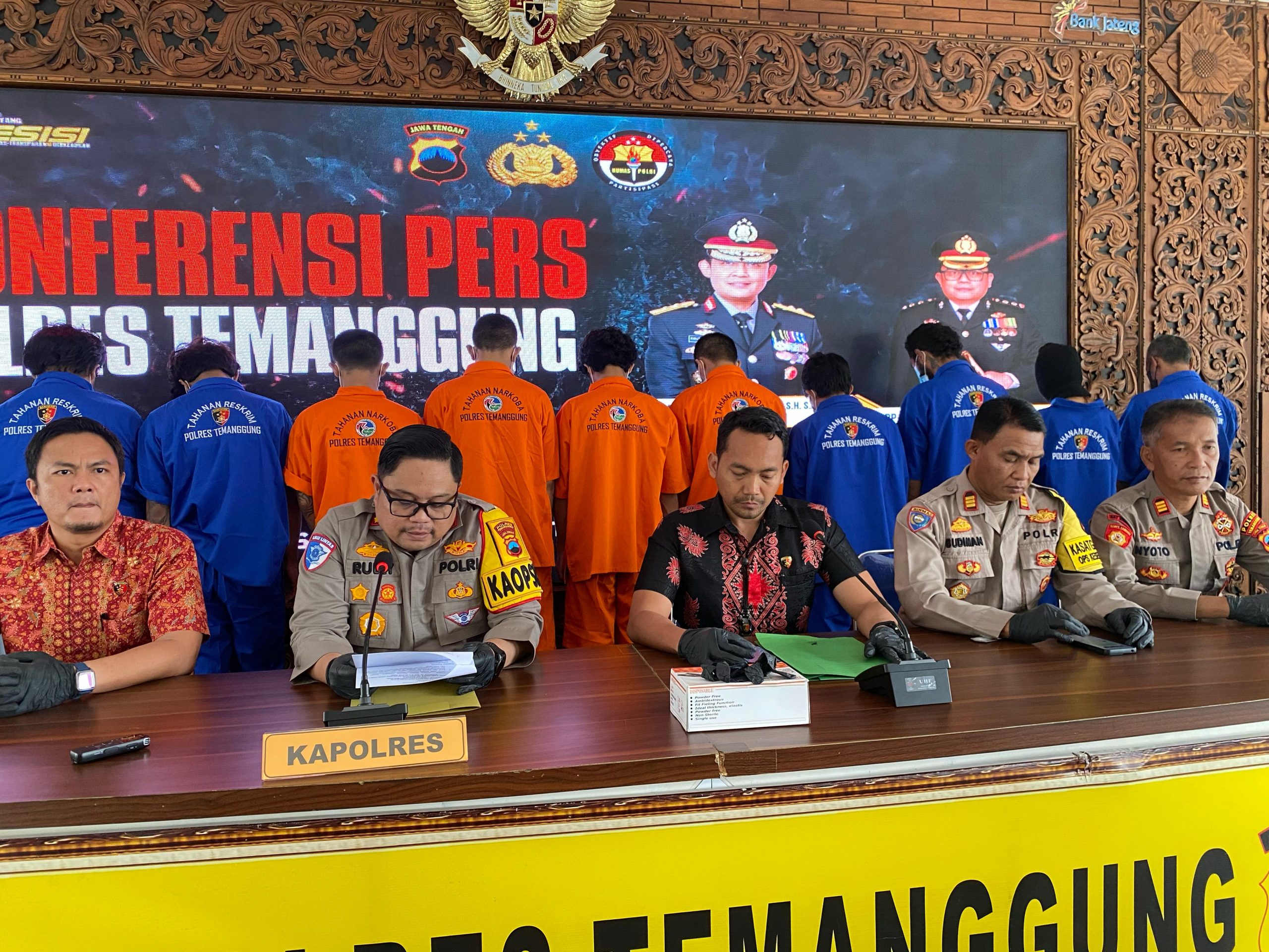 TEMANGGUNG – Polres Temanggung, Polda Jateng menggelar konferensi pers terkait pelaksanaan kegiatan rutin dengan target yang dioptimalkan. Konferensi pers tersebut dipimpin langsung oleh Kapolres Temanggung AKBP Rully Thomas didampingi Pejabat terkait bertempat di Aula Mapolres setempat. Jumat (21/2).