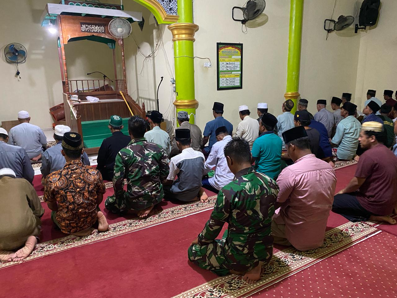 Kabarmedianews.com- INHIL – Personel Kodim 0314/Inhil yang tergabung dalam Satuan Tugas (Satgas) TNI Manunggal Membangun Desa (TMMD) ke-123 melaksanakan salat tarawih dan tadarus bersama masyarakat di Masjid Sabilul, Desa Mumpa, Kecamatan Tempuling, pada Sabtu (1/3/2025) malam.