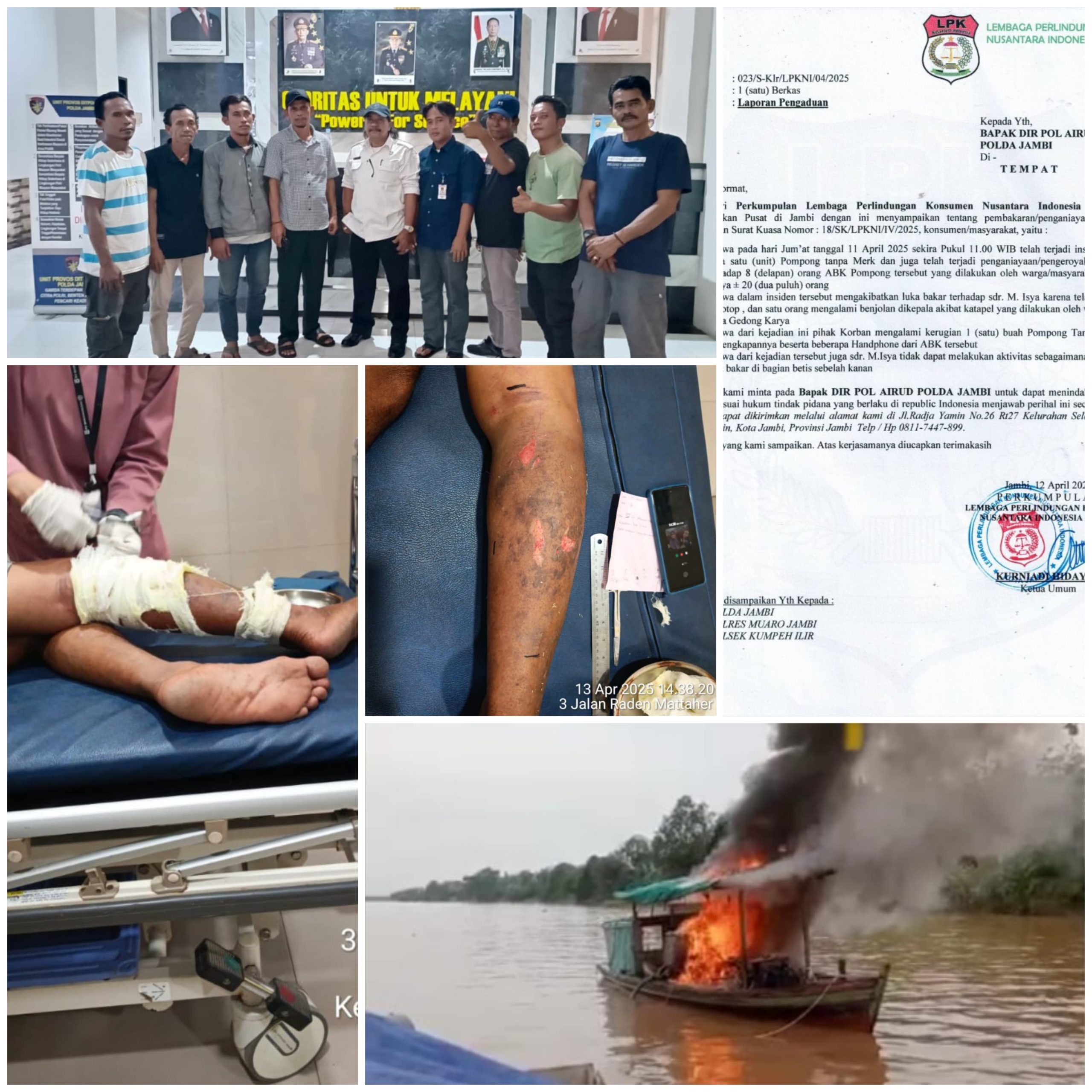 Kurniadi Hidayat mengatakan pihaknya telah melaporkan tindakan arogan pelaku pembakaran satu unit perahu tersebut ke Ditpolairud Polda Jambi.
