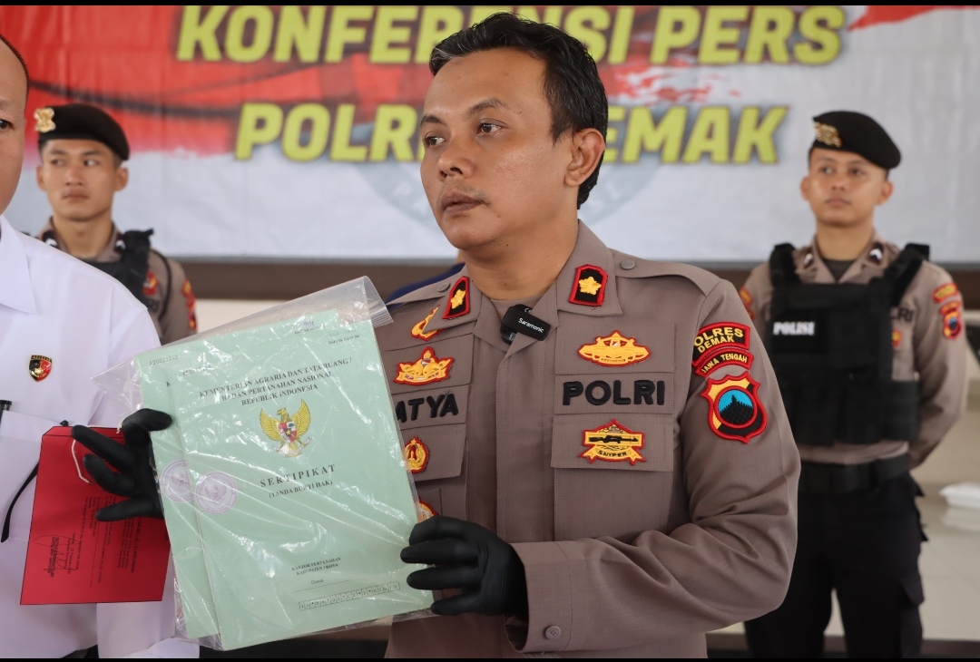 Demak – Satuan Reserse dan Kriminal (Satreskrim) Polres Demak mengungkap kasus pemalsuan sertifikat tanah di Desa Bandungrejo, Kecamatan Mranggen, Kabupaten Demak.