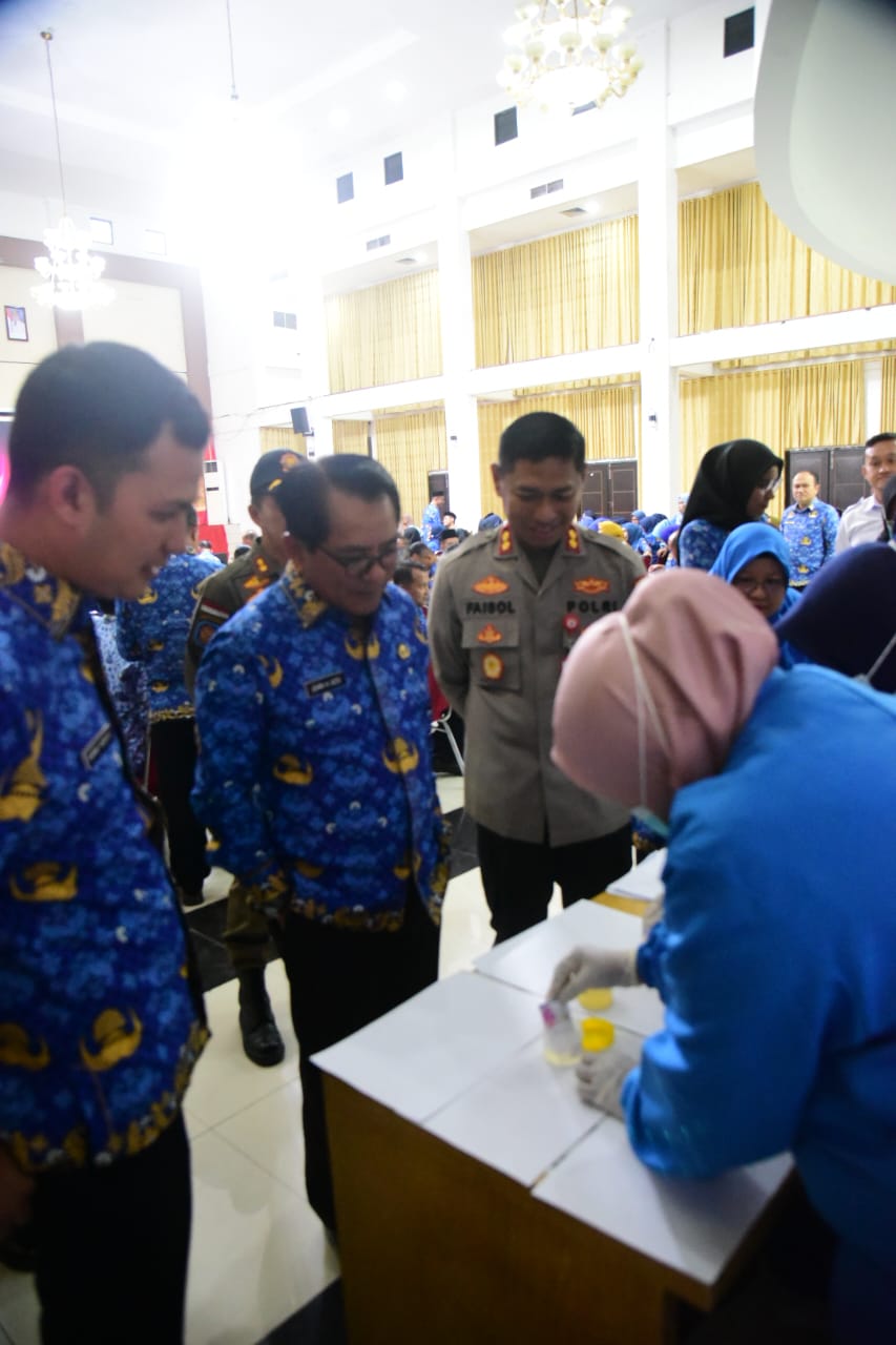 Dirinya juga menyampaikan bahwa pelaksanaan tes urine ini merupakan bentuk komitmen pemerintah daerah dalam menciptakan lingkungan kerja yang bersih, profesional, dan berintegritas.