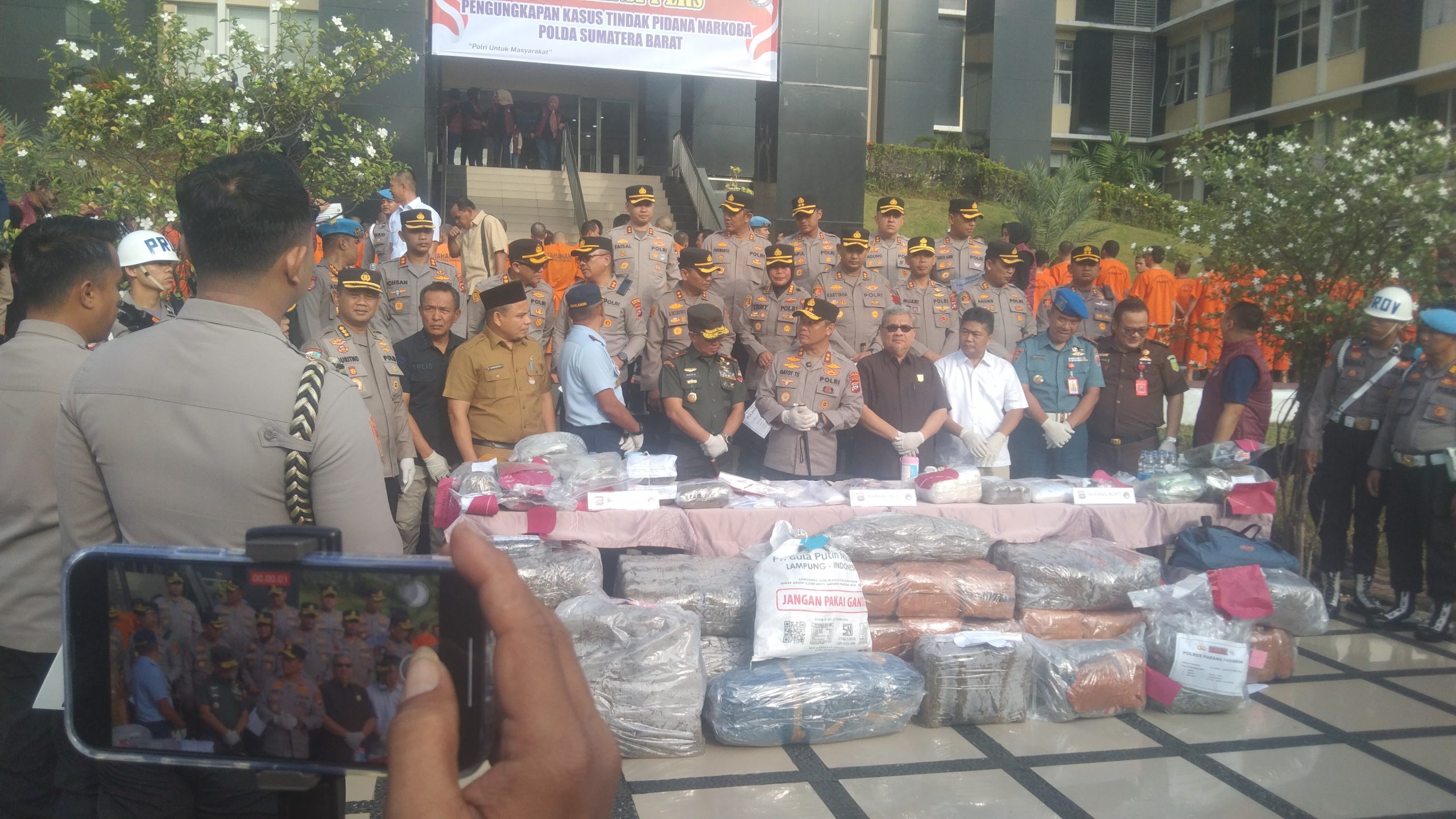 Kapolda Sumbar, Irjen Pol Gatot Tri Suryanta dalam keterangan pers nya pada awak media mengatakan, bahwa Polres Jajaran Dalam ruang lingkup Polda Sumbar pada tahun 2025 telah menindak sebanyak 388 Kasus penyalahgunaan narkoba dan obat-obatan terlarang dengan jumlah pelaku sebanyak 499 Orang yang terdiri dari : 479 Orang Laki-Laki, dan 20 Orang Perempuan dengan Barang Bukti SABU sebanyak 7,13 Kg, GANJA : 309,17 Kg dan PIL EXTASY : 1.584 ½ BUTIR + 8,09 Gram”, Ujar Kapolda.