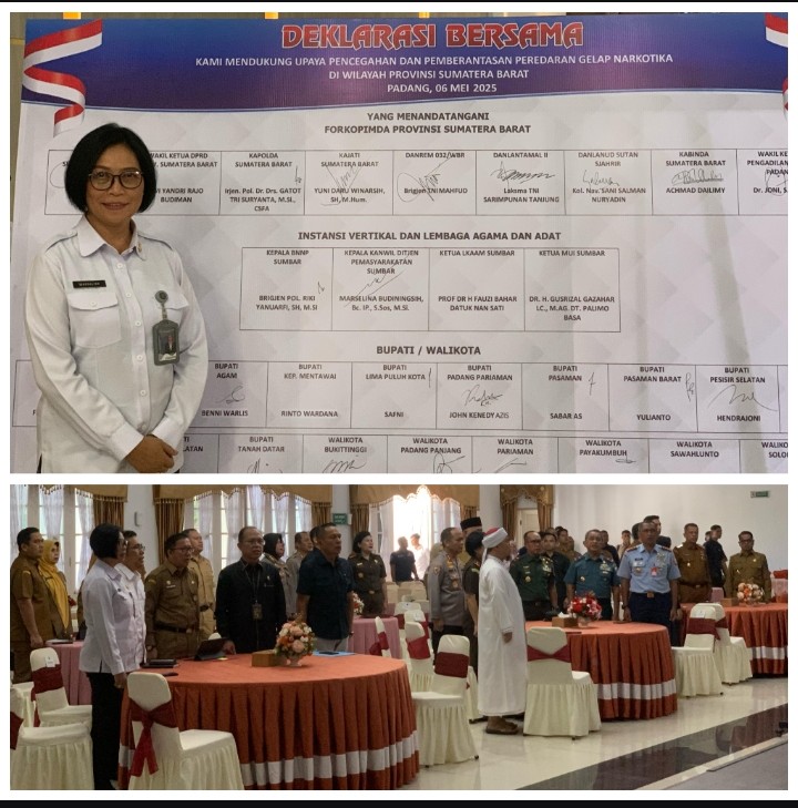 Diantaranya, Kepala Kantor Wilayah Direktorat Jenderal Pemasyarakatan (Ditjenpas) Sumatera Barat (Sumbar) Marselina BudiNingsihturut menandatangani Deklarasi Upaya Pencegahan dan Pemberantasan Peredaran Gelap Narkotika bersama jajaran Forkopimda dan instansi vertikal Provinsi Sumatera Barat.