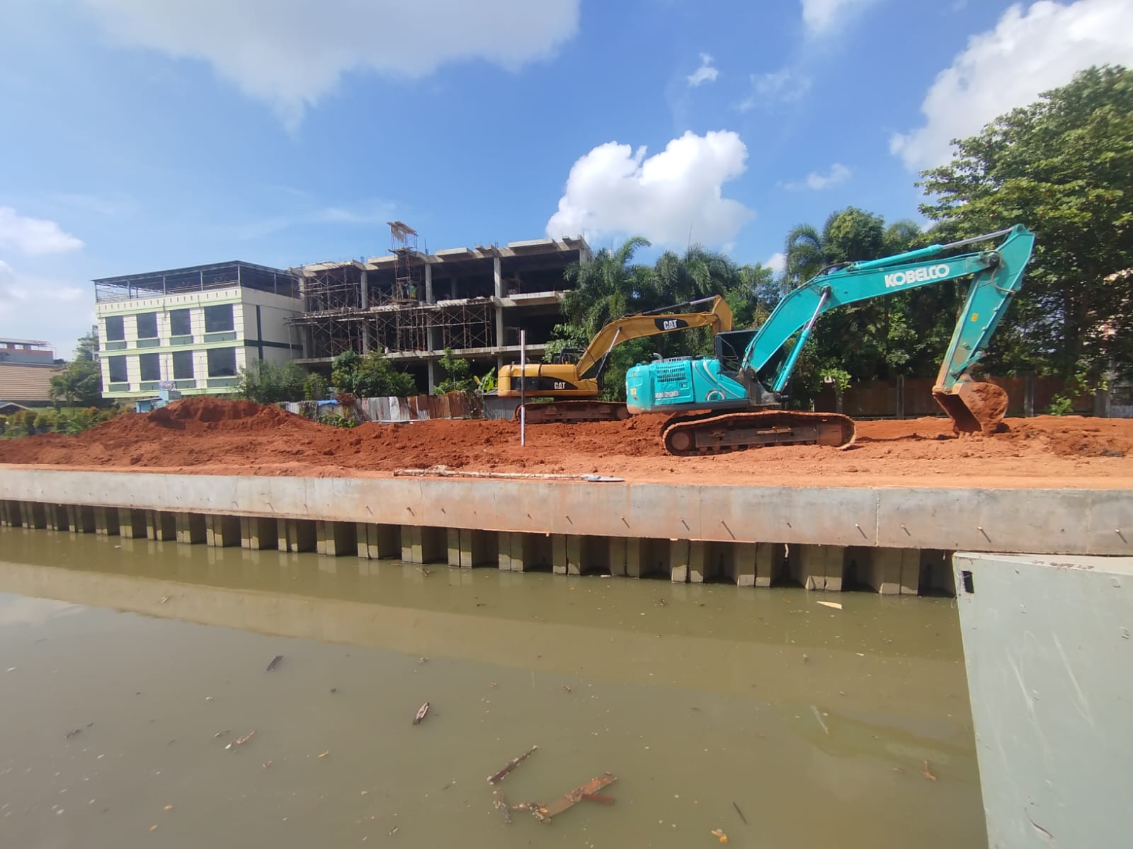 Saat ini, progres pembangunan tahap pertama telah mencapai 25 persen. Pekerjaan meliputi pemancangan CCSP (Concrete Composite Sheet Pile), yaitu panel beton precast sebagai penahan air sepanjang 300 meter di badan Sungai Veteran.