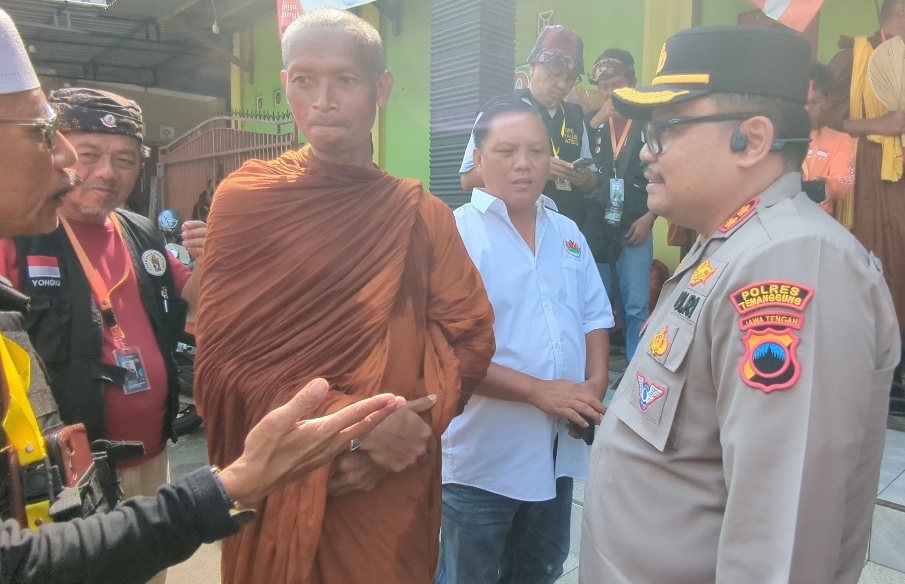 Temanggung – Polres Temanggung, Polda Jateng melaksanakan pengamanan kegiatan perjalanan 34 Biksu Tudong yang berasal dari berbagai negara yaitu Thailand, Kamboja, Malaysia dan Amerika Serikat yang menempuh jalur dari Semarang menuju ke Candi Borobudur melewati Kabupaten Temanggung.