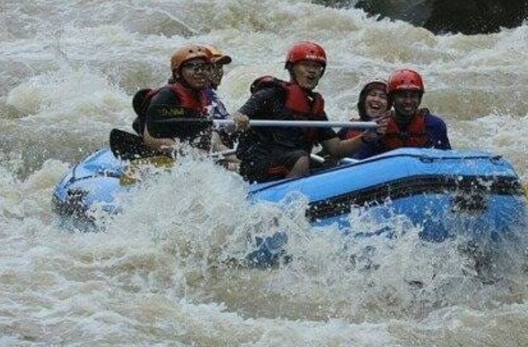 “Durasi wisata rafting ini 2 sampai 3 jam, dan itu sudah termasuk waktu pemanasan dan waktu istirahat,” terang Arum.