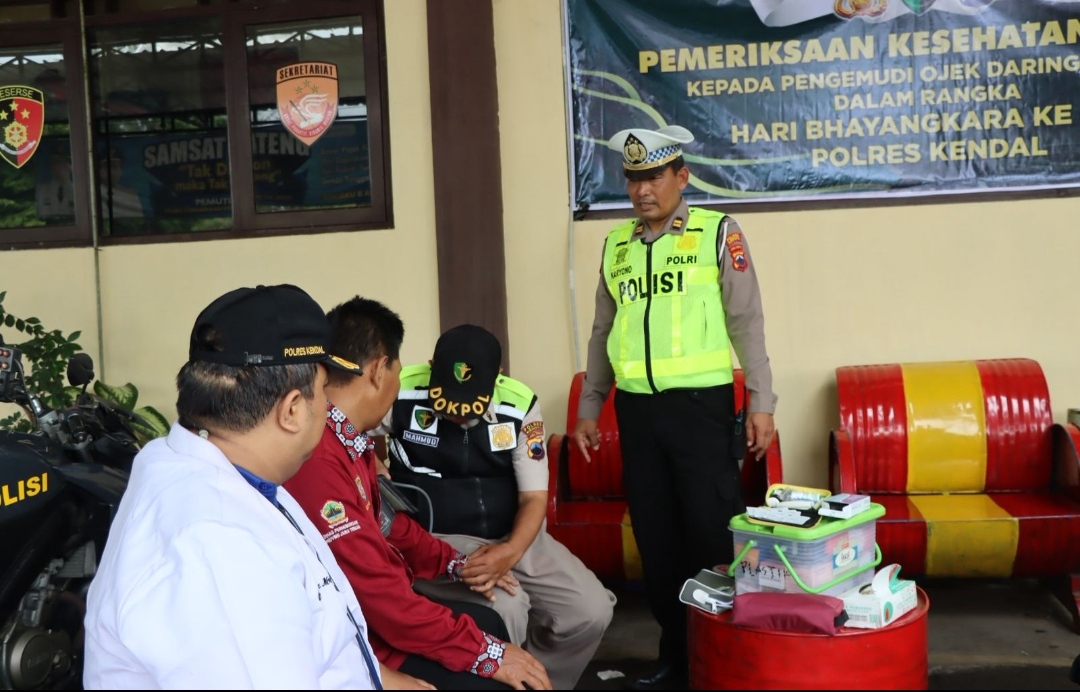 KENDAL — Dalam rangka menyambut Hari Bhayangkara ke-79, Polres Kendal melalui Seksi Kedokteran dan Kesehatan (Sidokkes) menggelar kegiatan pemeriksaan kesehatan gratis bagi para pengemudi ojek online (ojol). Kegiatan yang berlangsung selama dua hari, 10 hingga 11 Juni 2025 di halaman Mapolsek Kendal Kota ini, menjadi wujud nyata komitmen kepolisian dalam menjaga keselamatan lalu lintas dari hulu: kondisi kesehatan pengemudi.