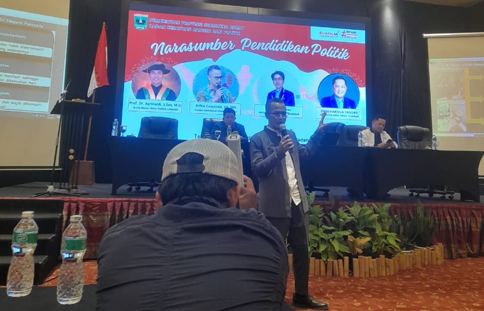 Acara yang berlangsung di Ballroom The Axana Hotel Padang ini menghadirkan sejumlah narasumber dari unsur pemerintah, legislatif, dan akademisi. Puluhan tokoh masyarakat, pemuda, serta perwakilan organisasi kemasyarakatan hadir dengan antusias, mencerminkan semangat kebersamaan dalam menguatkan literasi politik di tingkat akar rumput.