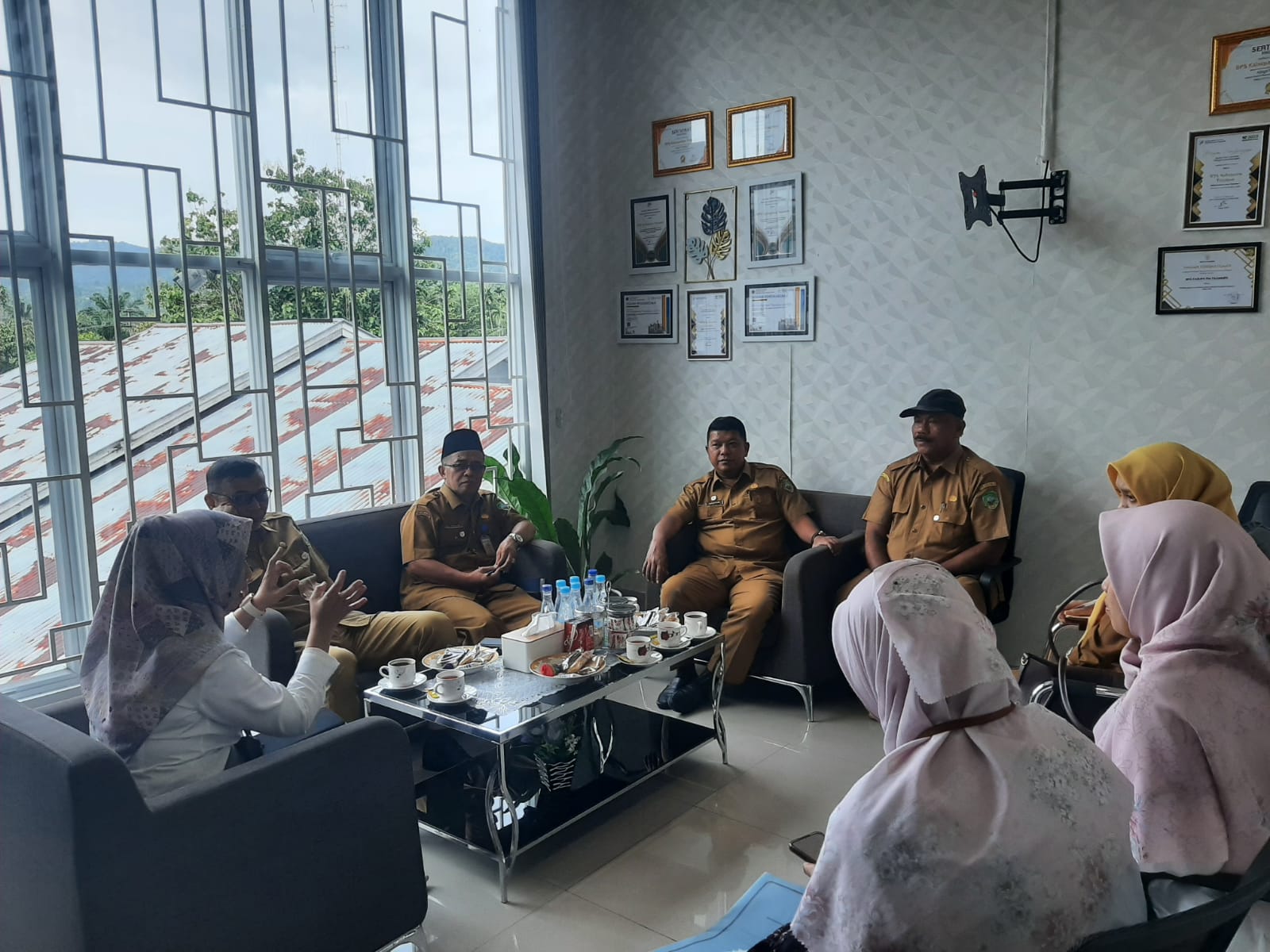 Kordinasi singkat antara Plh. Kepala Dinas Kominfo Teddy Marta di dampingi Kabid PSS Pemkab Pasaman Asnil SY dbeserta sejumlah Kepala Seksi dan staf dari Bidang PSS disambut hangat Kepala BPS Pasaman Nita Andriyani.