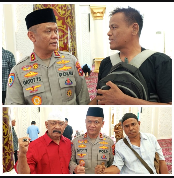 Awak media, yang kebetulan turut hadir dalam ibadah ini, tidak hanya menyaksikan langsung khutbah yang menggugah hati, namun juga sempat berswafoto dan berdialog ringan dengan Kapolda usai salat. Sikapnya yang agamis, ramah, dan supel membuat suasana hangat dan penuh kesan.