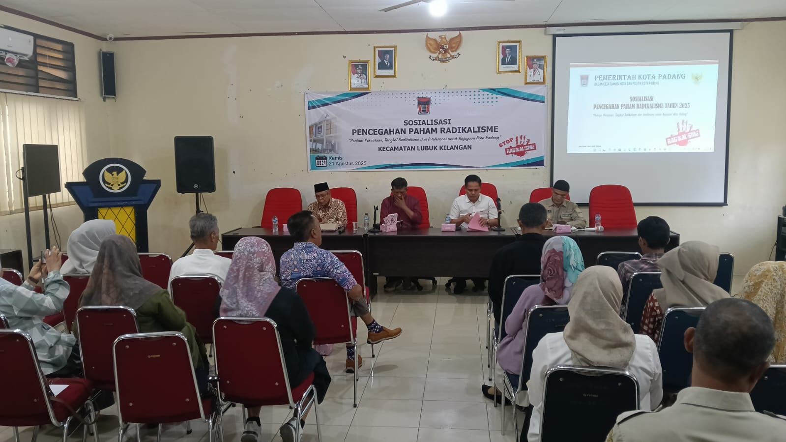 Padang | Dalam rangka memperkuat persatuan dan kesatuan bangsa serta menjaga kondusivitas wilayah, Perwira Seksi Intelijen (Pasi Intel) Kodim 0312/Padang, Mayor Arm Febrinaldi Musdar melaksanakan kegiatan Sosialisasi Pencegahan Paham Radikalisme dengan tema “Perkuat Persatuan, Tangkal Radikalisme dan Intoleransi untuk Kejayaan Bangsa”, bertempat di Kantor Camat Lubuk Kilangan Jln. Ampera No.26, Bandar Buat, Kota Padang. Kamis(21/08/2025).