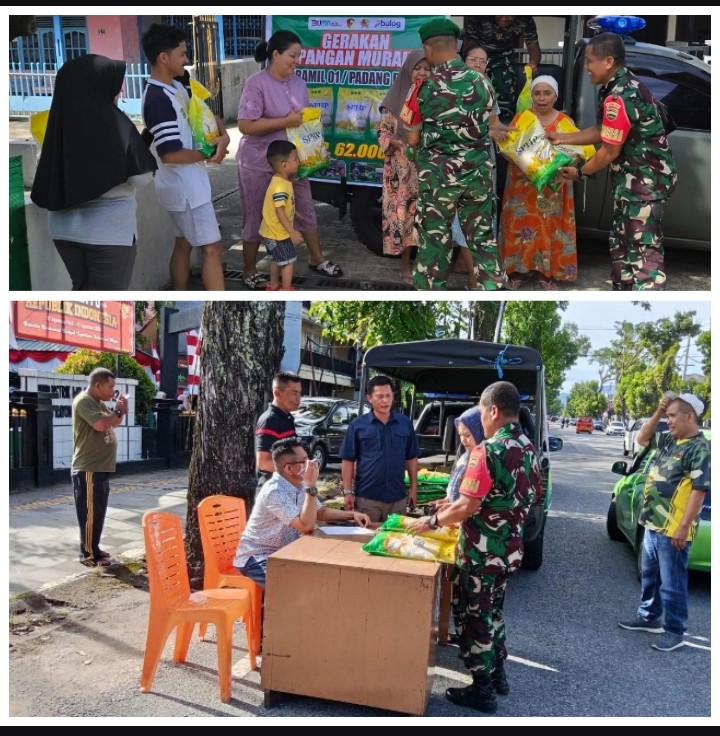 Padang | Koramil 01/PBU (Padang Barat Utara), Kodim 0312/Padang, menggelar Gerakan Pangan Murah (GPM) Beras Stabilitasi Pasokan dan Harga Pangan (SPHP) sepanjang Agustus 2025. Kegiatan yang berlangsung di Makoramil 01/PBU, Padang Barat, ini dipimpin langsung oleh Danramil 01/PBU, Mayor Kav Sukri, yang menegaskan komitmen TNI untuk hadir di tengah masyarakat, terutama dalam menjaga stabilitas harga pangan.