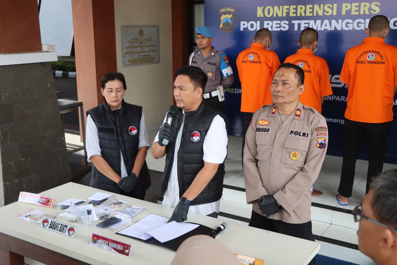 TEMANGGUNG – Satuan Reserse Narkoba Polres Temanggung berhasil mengamankan tiga tersangka pengedar narkotika jenis ganja dan sabu. Penangkapan dilakukan di dua lokasi berbeda, yaitu di Kabupaten Temanggung dan Kota Magelang.