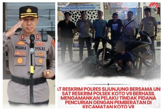 SIJUNJUNG | Komitmen Polres Sijunjung dalam memberantas tindak kriminalitas kembali dibuktikan. Di bawah kepemimpinan Kapolres Sijunjung AKBP Willian Harbensyah, S.I.K., M.H., tim gabungan dari Satreskrim Polres Sijunjung dan Unit Reskrim Polsek Koto VII sukses meringkus seorang pelaku pencurian dengan pemberatan (curat) yang kerap meresahkan warga.