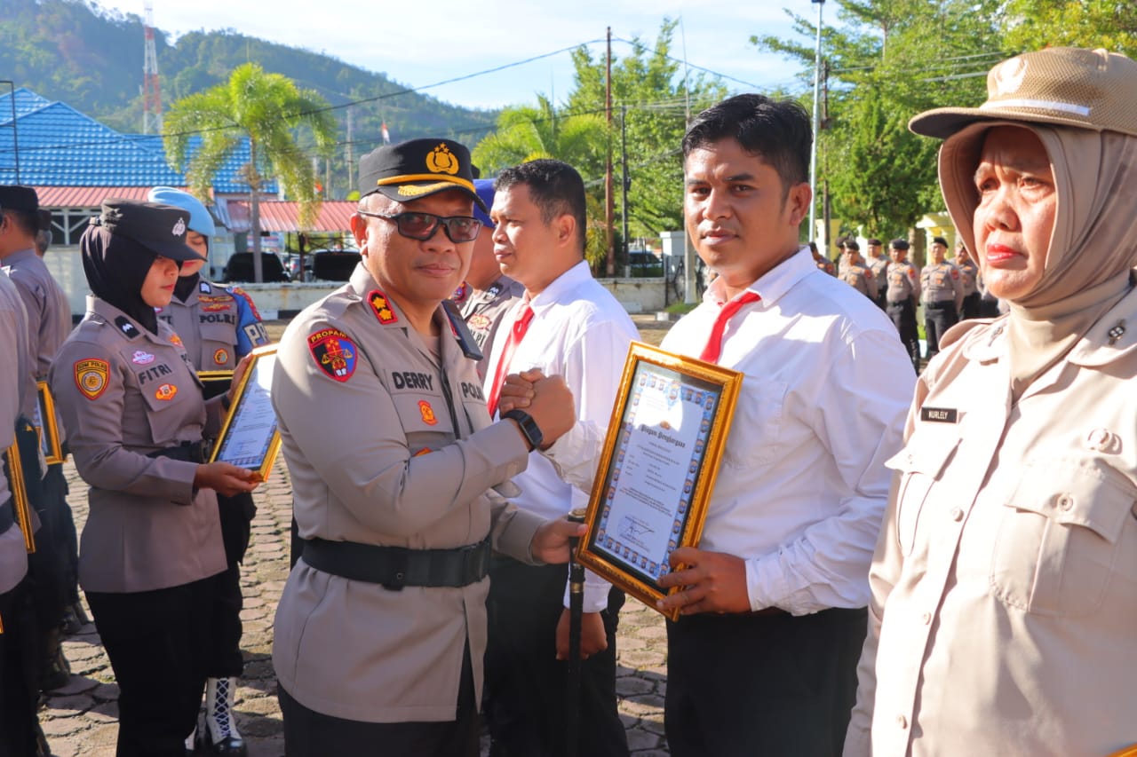“Prestasi ini menjadi bukti bahwa personel kita di lapangan bekerja dengan hati, dengan dedikasi, dan dengan komitmen penuh untuk menjaga keamanan warga,” ujar Kapolres Derry Indra di hadapan seluruh peserta apel.