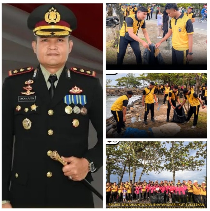 PADANG | Kapolres Sawahlunto AKBP Simon Yana Putra, S.I.K., menjadi salah satu sosok sentral dalam aksi heroik bertajuk Bakti Sosial Bersih Pantai yang berlangsung di Pantai Padang, Kota Padang, Minggu (26/10/2025). Di bawah sinar mentari pagi, ribuan peserta yang terdiri dari personel Polri, Bhayangkari, dan masyarakat tumpah ruah di bibir pantai, menciptakan lautan semangat kebersamaan yang memecahkan Rekor MURI sebagai kegiatan bersih pantai dengan peserta terbanyak di Indonesia.