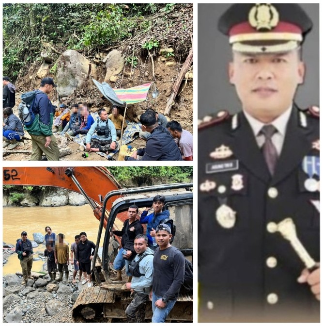 Sementara excavator yang ditemukan di lokasi masih dalam proses evakuasi. Kondisi medan yang curam dan jauh dari jalan utama menjadi tantangan tersendiri bagi aparat. Meski demikian, Kapolres memastikan alat berat tersebut akan dibawa ke Mapolres sebagai barang bukti utama.