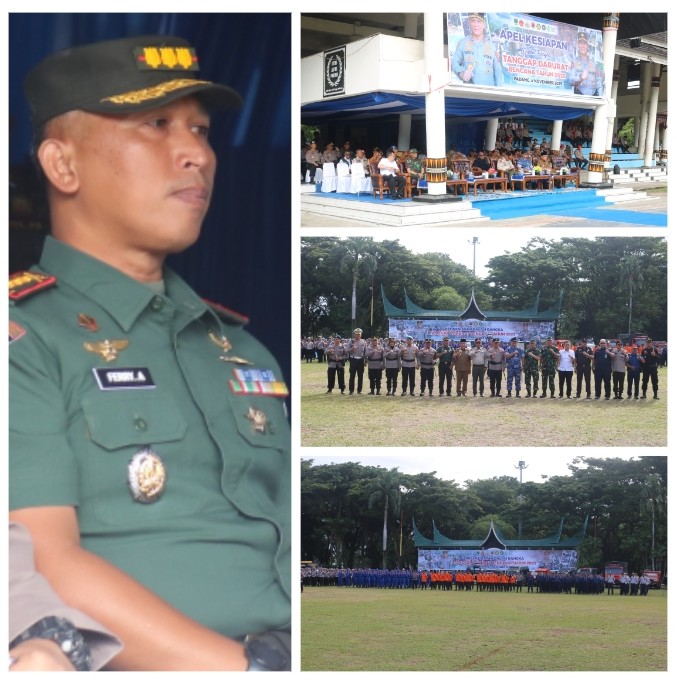 PADANG | Apel Kesiapan Tanggap Darurat Bencana Tahun 2025 berlangsung meriah dengan kehadiran Dandim 0312/Padang, Kolonel Inf Ferry Adianto, S.I.P., M.H.I., sebagai sosok pemimpin yang menegaskan pentingnya kesiapsiagaan menghadapi potensi bencana. Acara yang digelar di Lapangan Imam Bonjol, Kecamatan Padang Selatan ini menjadi ajang untuk memperkuat koordinasi antarinstansi dan memastikan kesiapan seluruh unsur yang terlibat.