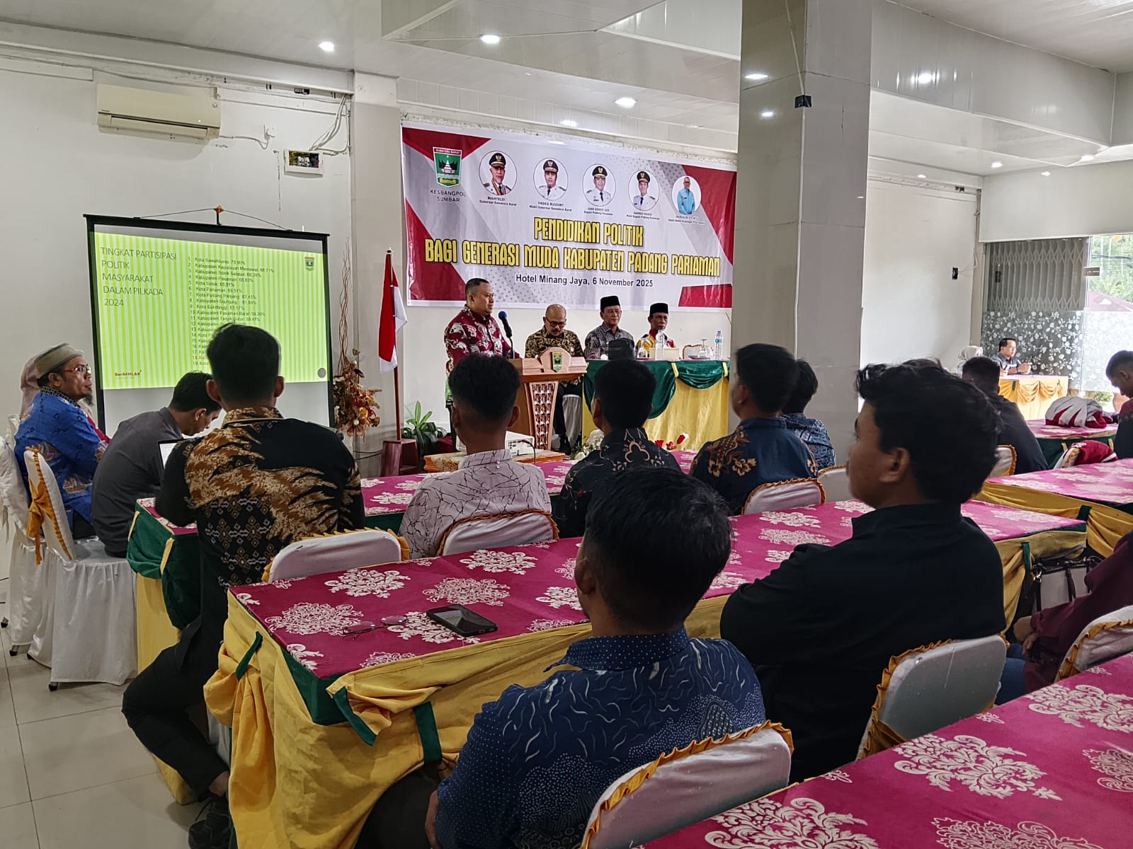Lubuk Alung | Upaya menumbuhkan kesadaran politik sejak dini kembali digelorakan oleh Badan Kesatuan Bangsa dan Politik (Kesbangpol) Provinsi Sumatera Barat. Bekerja sama dengan Kesbangpol Kabupaten Padang Pariaman, lembaga ini menggelar kegiatan Pendidikan Politik bagi Generasi Muda di Hotel Minang Jaya, Lubuk Alung, Kamis (6/11/2025).