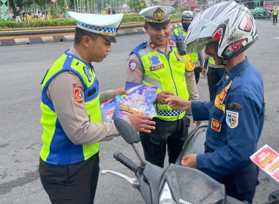 Demak – Satuan Lalu Lintas Polres Demak menggelar sosialisasi Operasi Zebra Candi 2025 di Alun-alun Demak, Rabu (19/11/2025). Kegiatan yang dipimpin Kepala Urusan Pembinaan dan Operasional (KBO) Satlantas Polres Demak, Iptu Djoko Prayitno itu menyasar para pengguna jalan yang melintas di kawasan pusat kota. Sosialisasi dilakukan untuk meningkatkan kepatuhan masyarakat terhadap aturan lalu lintas selama pelaksanaan Operasi Zebra yang berlangsung 17–30 November 2025.