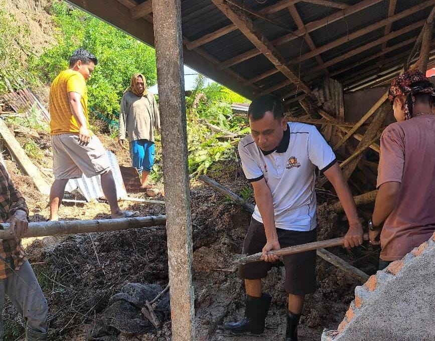 Bhabinkamtibmas yang turut mendampingi juga membantu memastikan arus komunikasi antarpihak berjalan lancar. Keterlibatan aparat membuat kegiatan pembersihan dan evakuasi menjadi lebih terarah di lapangan.