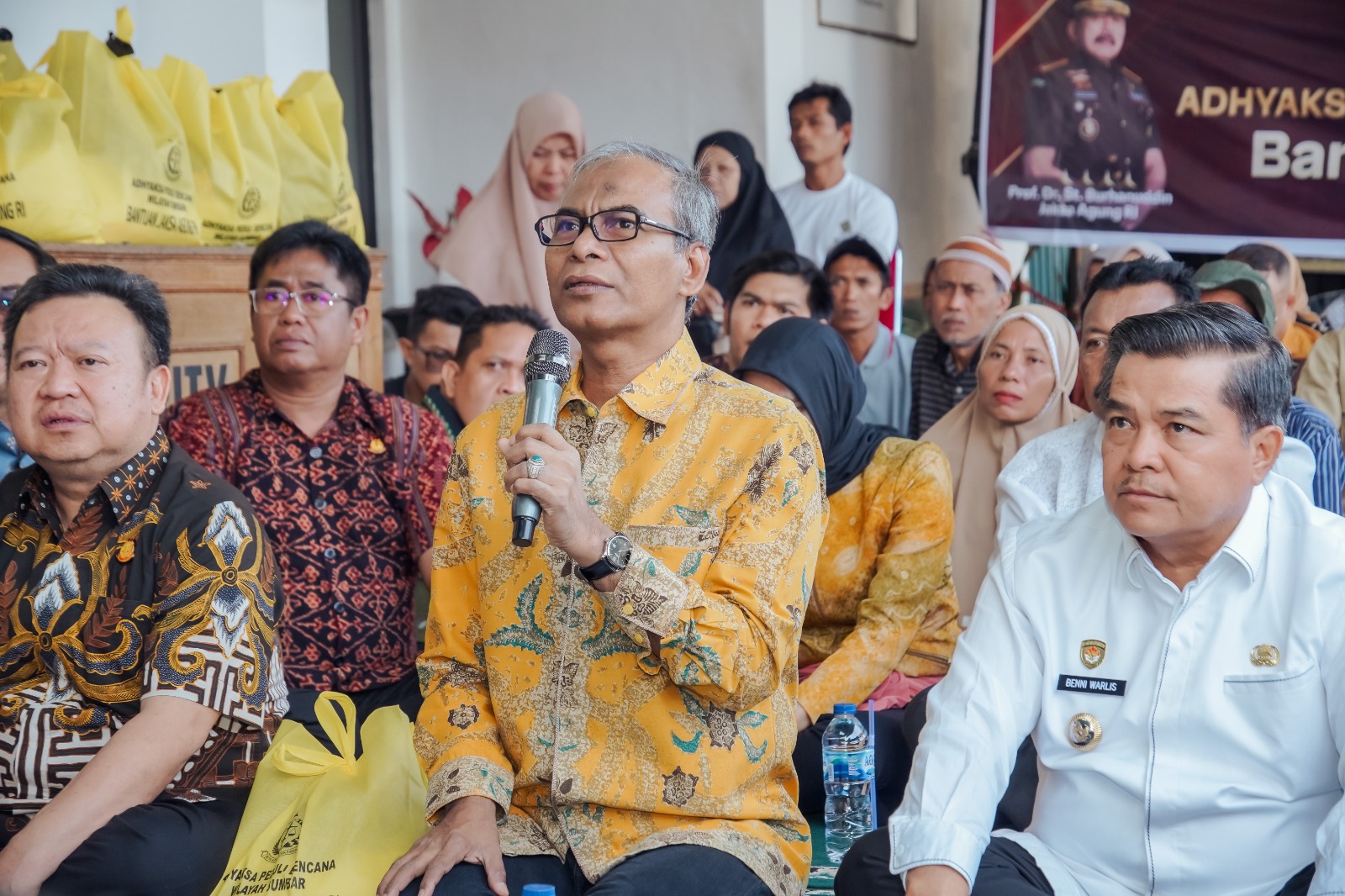 Adapun bantuan yang diserahkan merupakan bantuan dari Jaksa Agung Republik Indonesia berupa paket sembako, kasur, selimut, serta berbagai kebutuhan dasar lainnya yang sangat dibutuhkan oleh para korban.