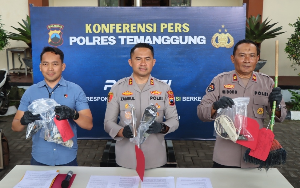 Hal ini disampaikan langsung oleh Kapolres Temanggung, AKBP Zamrul Aini, dalam konferensi pers yang digelar di Mapolres Temanggung. Dalam kesempatan tersebut, Kapolres didampingi oleh Kasat Reskrim AKP Didik Tri Wibowo dan Kasi Humas Iptu Endi Widodo.