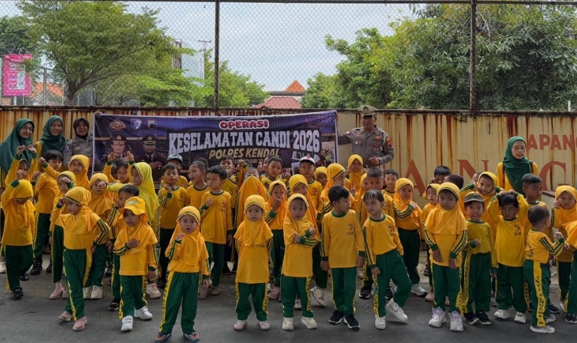 KENDAL – Suasana Lapangan Indoor Polres Kendal tampak berbeda pada Selasa pagi (3/2/2026). Gelak tawa dan antusiasme puluhan siswa dari TK-KB Yayasan Al-Muchsin, Desa Penanggulan, Kecamatan Pegandon, memadati area tersebut dalam rangka kegiatan Sosialisasi Ops Keselamatan Candi 2026 sekaligus program Polisi Sahabat Anak (Polsanak).
