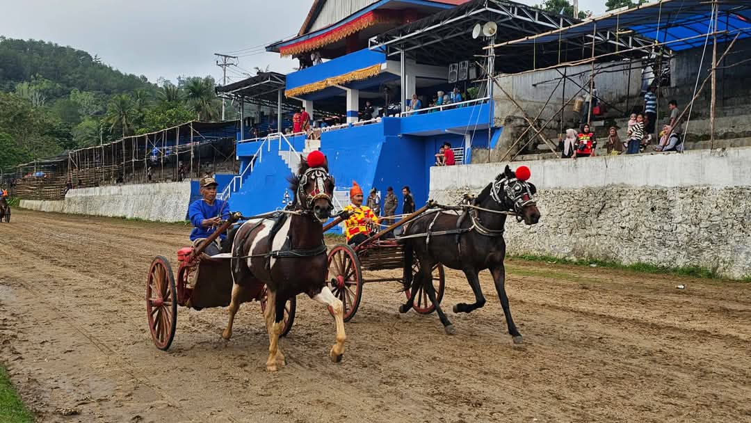 Bukik Gombak, Batusangkar | Di balik gegap gempita Pacu Kuda yang selalu menyedot perhatian ribuan penonton, terselip sebuah tradisi lama yang tetap setia dipertahankan masyarakat Minangkabau, yakni Pacu Bugih. Tradisi ini menjadi sajian pembuka sebelum dentuman adrenalin pacu kuda utama dimulai di gelanggang.