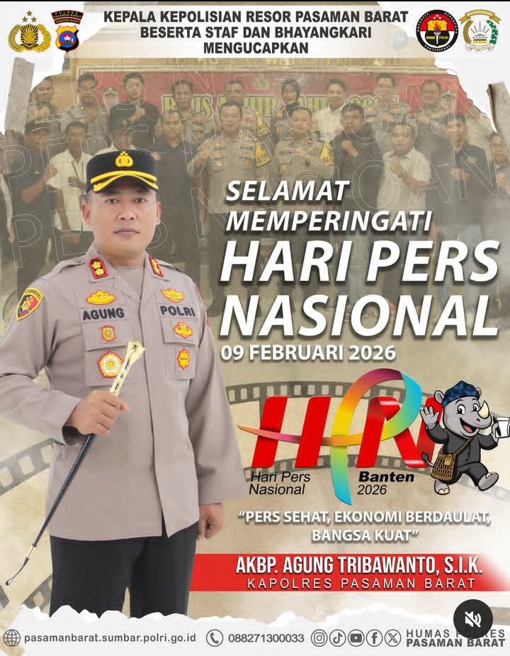 PASAMAN BARAT | Peringatan Hari Pers Nasional (HPN) yang jatuh pada 9 Februari 2026 menjadi momentum reflektif bagi seluruh elemen bangsa, termasuk institusi Kepolisian. Di Kabupaten Pasaman Barat, peringatan HPN dimaknai sebagai ruang penghormatan terhadap peran strategis pers dalam menjaga keseimbangan demokrasi, menyuarakan kepentingan publik, serta membangun kesadaran kolektif masyarakat melalui informasi yang akurat dan bertanggung jawab.