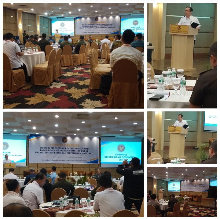 PADANG | Pemulihan Sumatera Barat pascabencana kini ditempatkan dalam kerangka yang lebih luas: bukan sekadar rehabilitasi fisik, tetapi bagian dari penguatan ketahanan wilayah dan stabilitas nasional. Hal itu mengemuka dalam Forum Diskusi Pemulihan Pasca Bencana Sumatera Barat yang digelar Dewan Pertahanan Nasional Republik Indonesia (DPN RI) Bidang Geoekonomi, Rabu, 11 Februari 2026, di Ballroom Pangeran Beach Hotel, Kota Padang.
