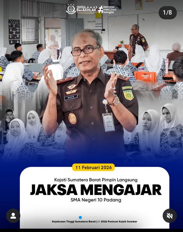 SUMBAR | Komitmen Kejaksaan Tinggi Sumatera Barat dalam menanamkan kesadaran hukum sejak dini kembali ditegaskan melalui program Jaksa Mengajar yang digelar di SMA Negeri 10 Padang, Rabu 11 Februari 2026. Kegiatan ini dipimpin langsung oleh Kepala Kejaksaan Tinggi Sumatera Barat, Muhibuddin, S.H., M.H., yang turun langsung ke ruang kelas dan berinteraksi dengan para siswa.