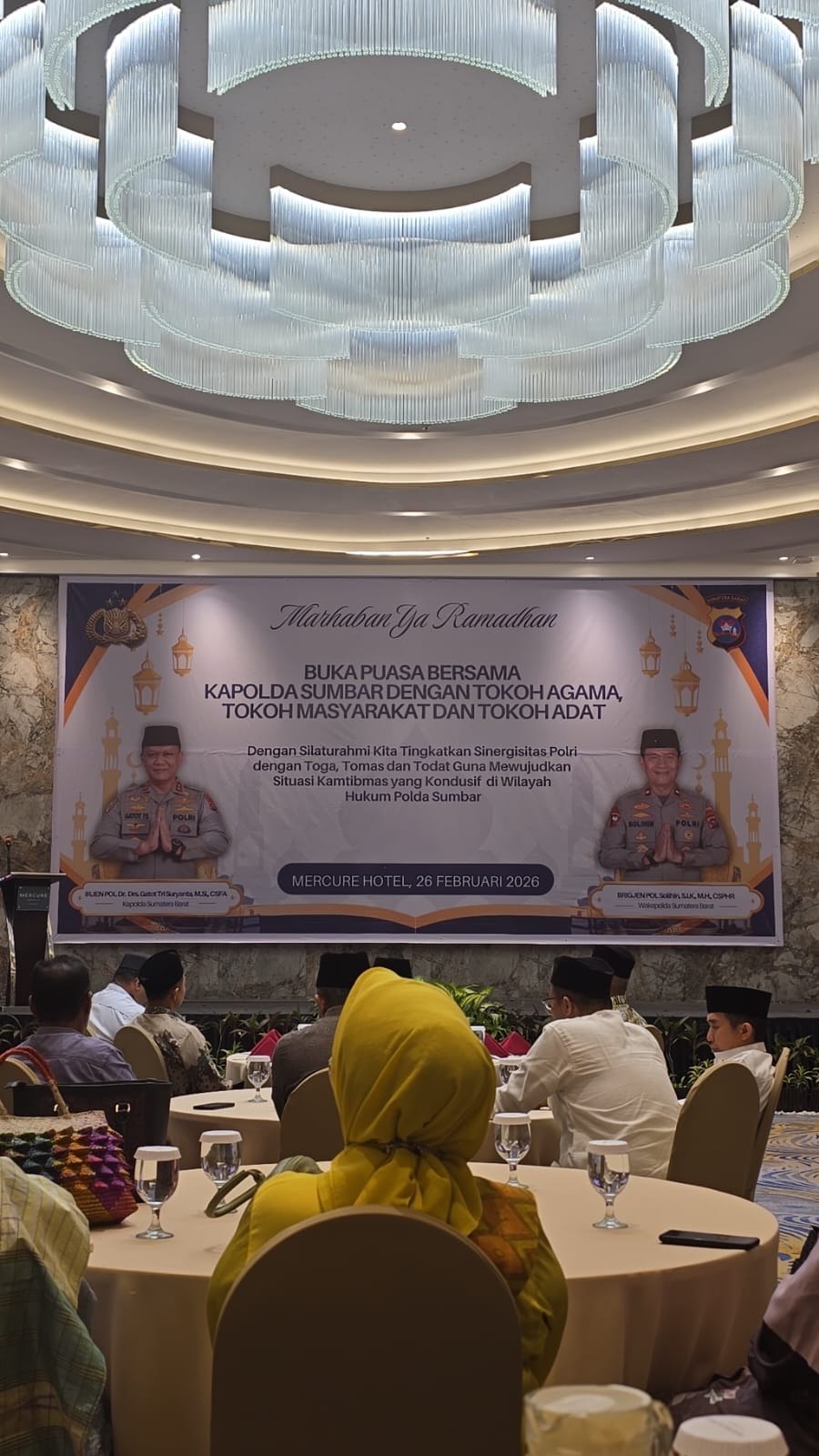 Padang | Kepolisian Daerah Sumatera Barat melaksanakan kegiatan buka puasa bersama dengan Tokoh agama, tokoh adat dan tokoh masyarakat Sumatera Barat di Hotel Mercure, Kota Padang, Kamis (26/2/2026).
