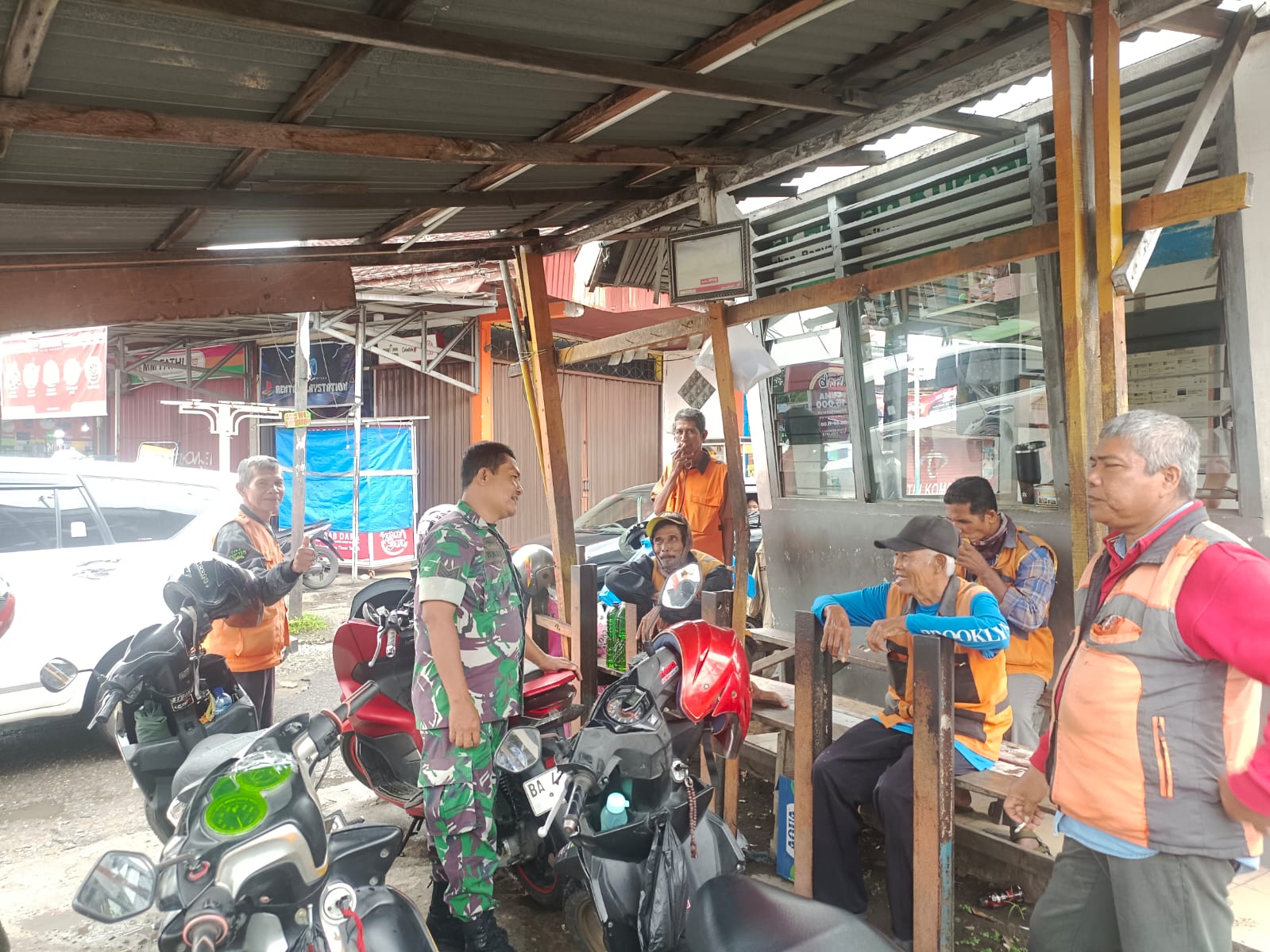 Kegiatan komsos ini berlangsung dalam suasana santai dan penuh keakraban, mencerminkan kedekatan antara Babinsa dengan masyarakat binaannya, khususnya para pekerja sektor informal yang terus bergerak mendukung aktivitas warga.