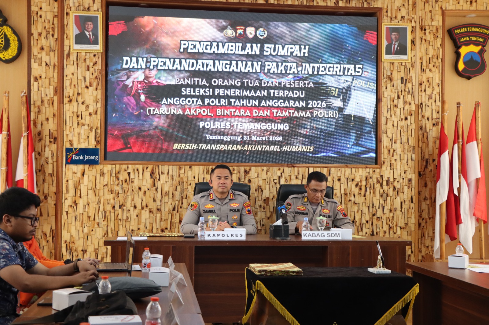 TEMANGGUNG – Kepolisian Resor (Polres) Temanggung menegaskan komitmennya dalam mewujudkan proses seleksi anggota Polri yang bersih, transparan, akuntabel, dan humanis (BETAH). Hal ini ditandai dengan digelarnya kegiatan Pengambilan Sumpah dan Penandatanganan Pakta Integritas Penerimaan Terpadu Anggota Polri T.A. 2026, Selasa (31/3/2026).