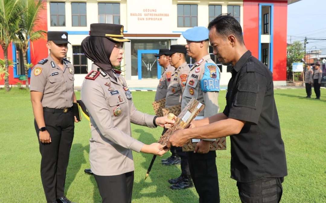 BATANG – Kapolres Batang AKBP Veronica memimpin langsung apel pemberian reward bagi personel berprestasi dan masyarakat umum di halaman Mapolres Batang, Senin (6/4/2026). Penghargaan ini diberikan sebagai bentuk apresiasi atas dedikasi luar biasa dalam menjaga kondusivitas wilayah, khususnya di lingkungan Polsek Bandar.