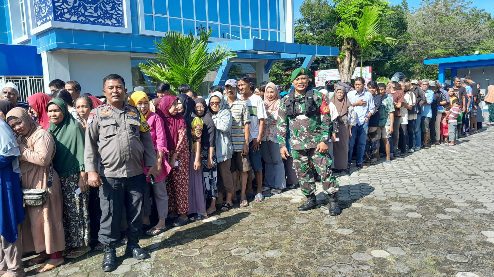 Dengan penuh kepedulian, ia juga membantu mengarahkan warga agar tetap menjaga ketertiban selama proses pembagian berlangsung, sehingga tidak terjadi kerumunan yang berpotensi menimbulkan gangguan.
